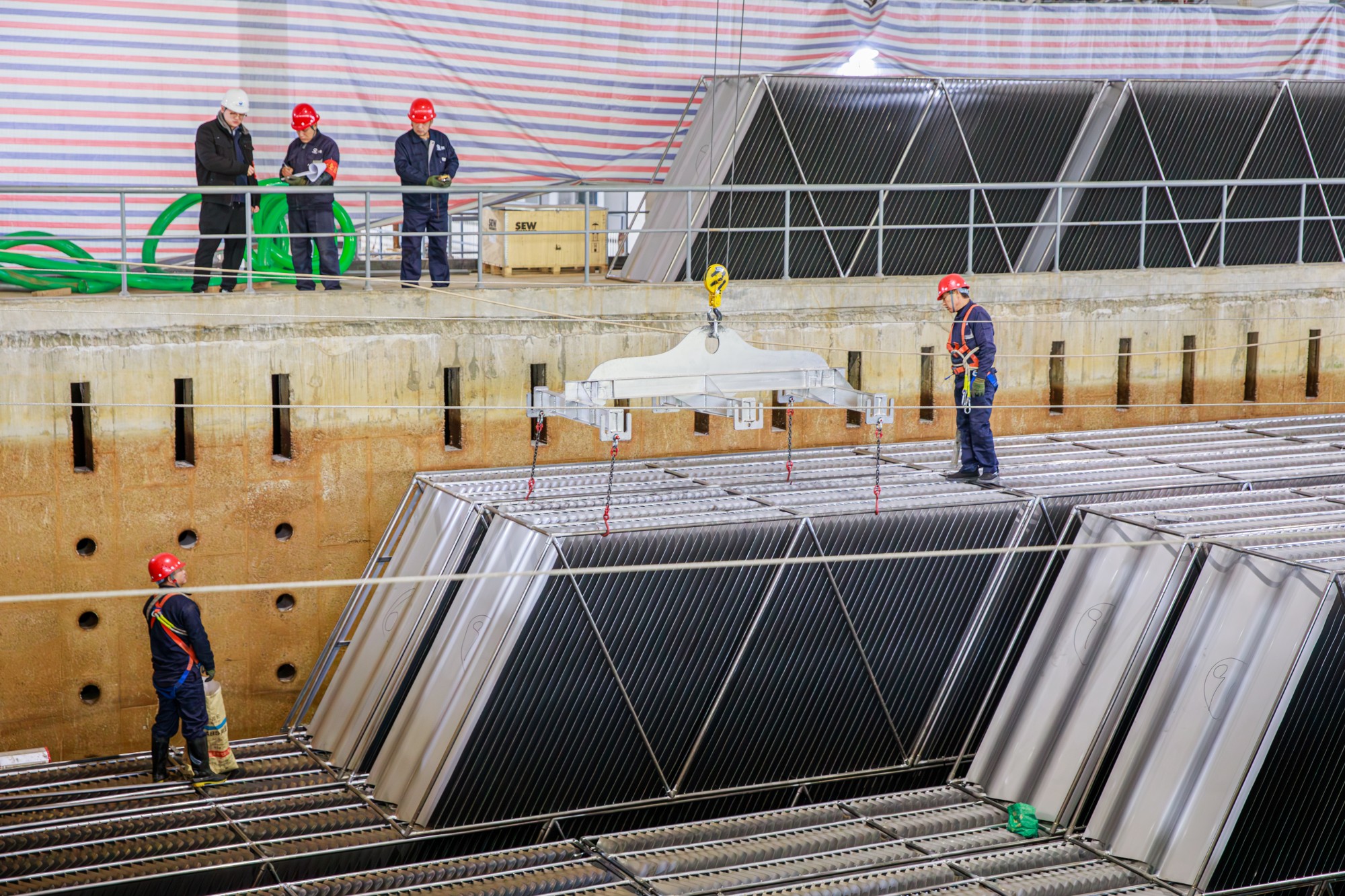 工程概况:北京自来水第九水厂日处理设计量50万吨。超长棱形框架不锈钢波形斜板均为世界杯压球公司所供