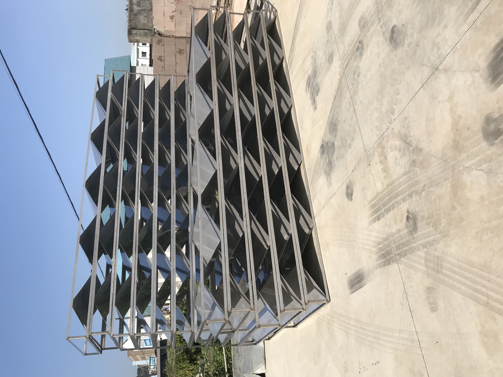 将平板折成90°角后波谷、波峰对称地焊接在管材或板材上,构成多个缩颈和扩大腔,组成单元箱体。单元箱体为全塑或不绣钢制品,材质采用PVC、ABS、或不锈钢。